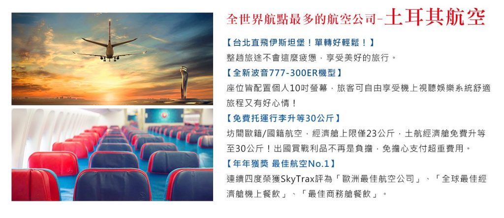 從台灣這邊搭乘直飛的班機前往伊斯坦堡目前所配合的班機是土耳其航空,讓你感受不一樣的空服。